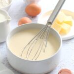 Dans une jatte, mélangez la farine, la levure et les sucres. Ajoutez l’œuf entier et le beurre et mélangez à l’aide d’une spatule.