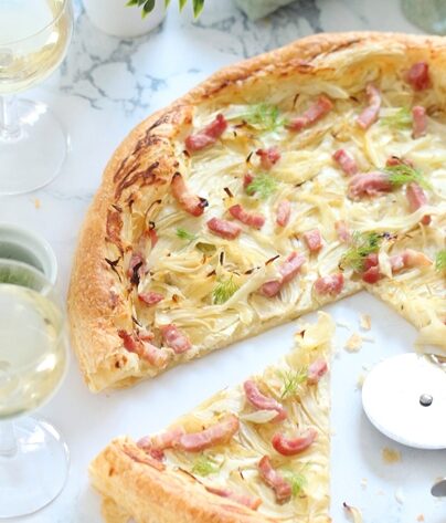 Tarte Fine au Fenouil, Oignon & Lardons Fumés, Façon Flàmmeküeche