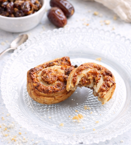 Ces feuilletés roulés aux dattes font partie de ces recettes simples en apparence, mais profondément réconfortantes. Croustillants à l’extérieur, fondants à l’intérieur, ils mettent à l’honneur un ingrédient encore trop méconnu chez nous : le sirop de dattes, aussi appelé Rob Al-Tamr.