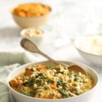 Ajoutez deux gousses d’ail en chemise, 10 cl d’eau chaude et enfournez pour 40 minutes de cuisson.