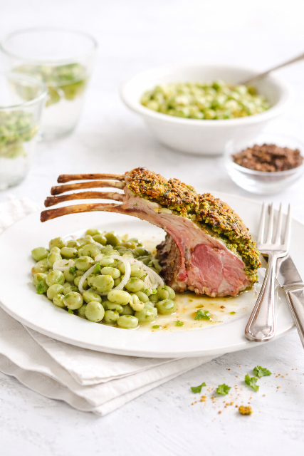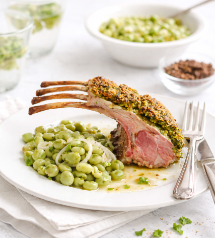 Servez les carrés d’agneau avec la salade de fèves.