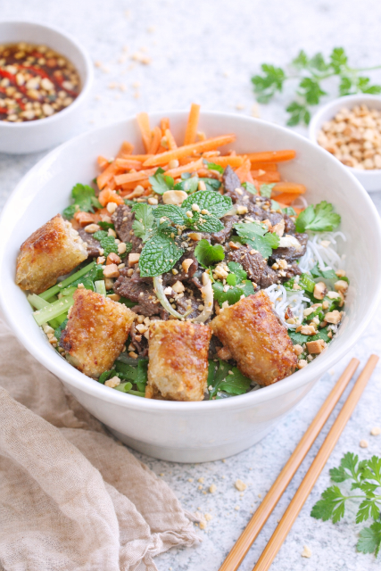 Spécialité du Sud du Vietnam, le Bún chả giò est tout simplement un bò bún garni de nems, tel que nous le connaissons en France. Cependant, …