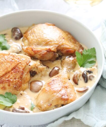 Quand les températures baissent ou que l’on a simplement envie d’un bon plat fait maison, les cuisses de poulet à la crème et aux champignons …