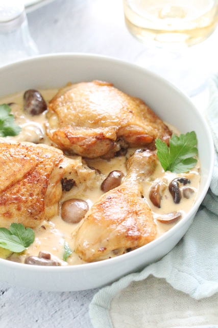 Quand les températures baissent ou que l’on a simplement envie d’un bon plat fait maison, les cuisses de poulet à la crème et aux champignons …