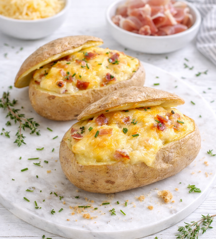 En voici une recette dérivée: les pommes de terre farcies au Pavin & Jambon de Parme.