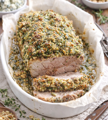 S’il y a une chose que j’aime dans la cuisine, c’est de transformer un plat simple en une véritable expérience gustative. Aujourd’hui, je vous propose une recette de rôti de porc en croûte d’herbes et de noix qui coche toutes les cases : savoureuse, originale, croustillante à l’extérieur et tendre à cœur.