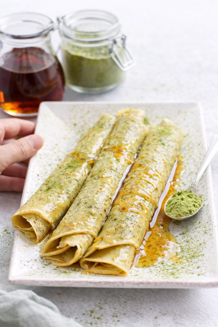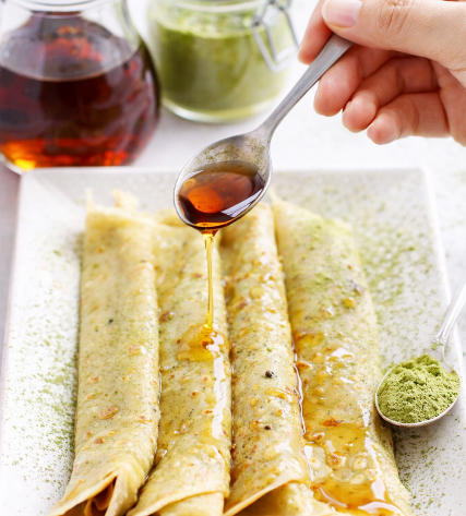 Dans cette recette, la douceur du sirop contre-balance l’amertume du the vert, pour une association très réussie.