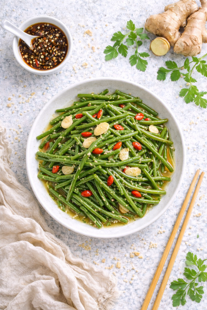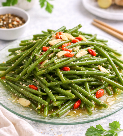 Une recette simple et symbolique : haricots verts sautés à l’ail et aux baies de goji