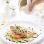Servez les dos de saumon accompagnés de la crème au topinambour et à l’estragon.