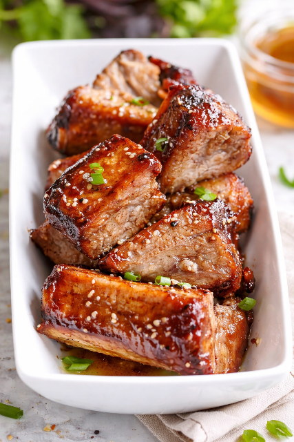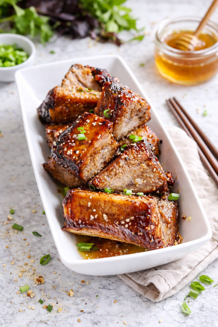 Ces travers de porc au miel et aux épices se marient parfaitement avec des pommes de terre rôties, un riz parfumé ou une poêlée de légumes croquants. Pour encore plus de gourmandise, vous pouvez terminer la cuisson par quelques minutes sous le gril du four, en surveillant attentivement.