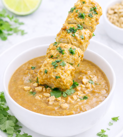Ces brochettes de dinde sauce cacahuète se préparent facilement et peuvent être cuites à la poêle, au four ou au barbecue. Servies avec du riz, des légumes grillés ou une salade fraîche, elles composent un plat complet et gourmand.
