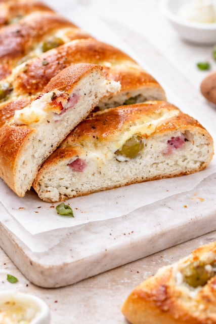 Servez cette fougasse en tranche, lors d’un apéritif dînatoire ou en entrée, accompagnée d’une salade verte par exemple.