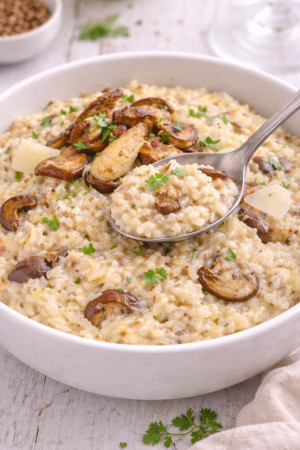 Plat automnal par excellence, ce risotto aux parfums de sous-bois conviendra parfaitement à l’élaboration de vos menus de fêtes.