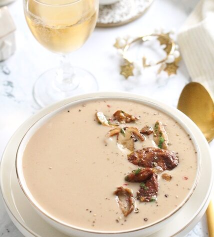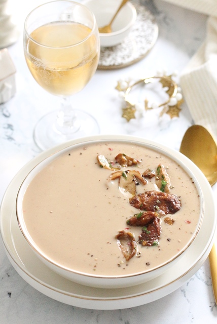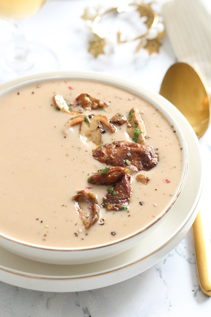 Pour cette première publication dans le cadre des recettes de fin d’année, je vous propose aujourd’hui un velouté de cèpes onctueux, délicatement relevé d’un poivre aux saveurs exceptionnelles et d’une poêlée de bouchons de champagne revenus à l’ail et au persil.