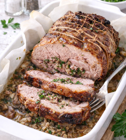 A l’occasion de la fête de Pâques et pour changer un peu du traditionnel gigot, je vous propose cette délicieuse recette de selle d’agneau farcie aux champignons de Paris, au Jambon de Bayonne et aux fines herbes.