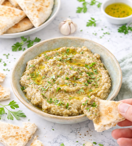 Ensuite, elles sont associées à une émulsion d’huile d’olive, d’ail, de vinaigre, et parfois de yaourt ou de citrons, selon les familles et les régions. Cela donne une texture crémeuse, légèrement acidulée, et un goût profond, tout en restant léger et frais.