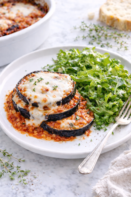Dans un plat à gratin, versez une première couche de sauce tomate. Recouvrez d’une couche de tranches d’aubergines grillées. Versez une seconde couche de sauce tomate, recouvrez de mozzarella et de parmesan râpé. Disposez une nouvelle couche d’aubergines grillées, recouvrez d’une couche de sauce tomate, recouvrez de nouveau de mozzarella et de parmesan râpé.