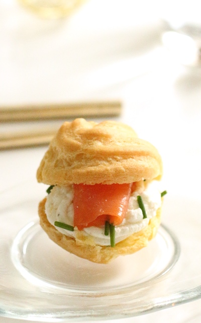 Petits Choux au Chèvre Frais, Truite Fumée & Ciboulette
