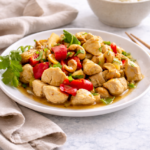 Au moment de servir, lavez la ciboule et la coriandre fraîche. Hachez grossièrement les noix de cajou au couteau.