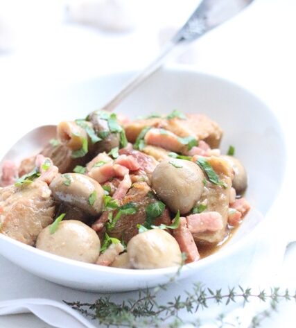 Aujourd’hui je vous propose une recette sans prétention, mais incontournable, de sauté de veau aux champignons de Paris.