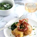 Traditionnellement, le confit de canard s’accompagne de pommes de terre sarladaises, sautées dans la graisse de canard avec de l’ail et du persil. Mais j’ai opté ici pour des pommes de terre Grenailles sautées aux graines de moutarde.