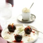 Préparez la vinaigrette: pelez et hachez les gousses d’ail. Dans un bol mélangez la moutarde avec le sirop d’érable, le vinaigre, l’huile de noix et 4 cuillères à soupe d’huile d’olive. Ajoutez l’ail haché et fouettez à l’aide d’une fourchette. Réservez.