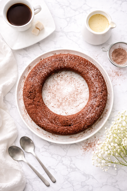 Huilez et farinez votre moule. Versez la préparation au chocolat puis enfournez pour 15 minutes de cuisson. Servez la couronne fondante au chocolat noir avec la crème anglaise et régalez-vous!