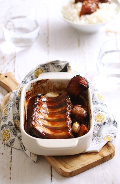 Servez les travers de porc laqués au miel et au citron avez du riz blanc par exemple.