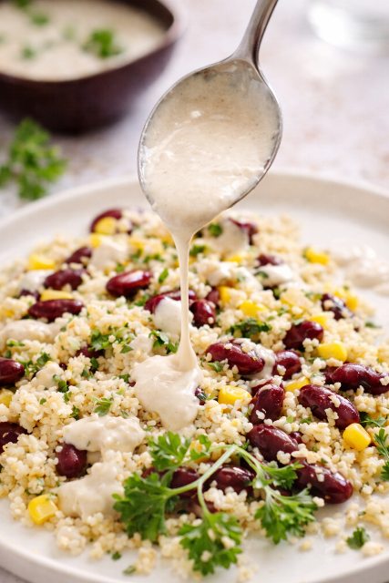 Salade Orientale au Tahini, Boulgour, Haricots Rouges & Maïs
