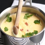 Faites fondre le beurre dans une petite casserole avec les zestes de citron. Ajoutez ensuite la crème liquide, laissez cuire quelques minutes, salez et poivrez. Lavez et ciselez le persil.