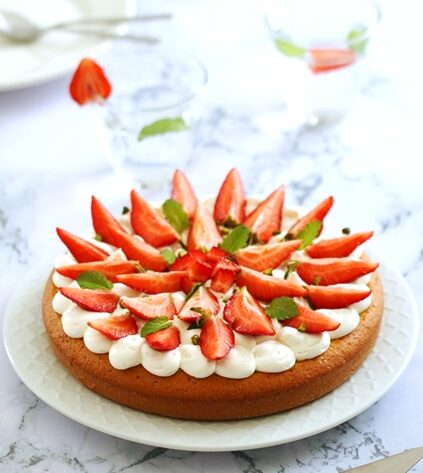 Surmonté d’une chantilly vanillée au mascarpone et de fraises et menthe fraîches, ce gâteau deviendra un incontournable pour vos fêtes d’anniversaire, tant il est simple à réaliser.