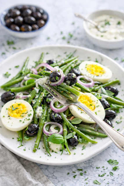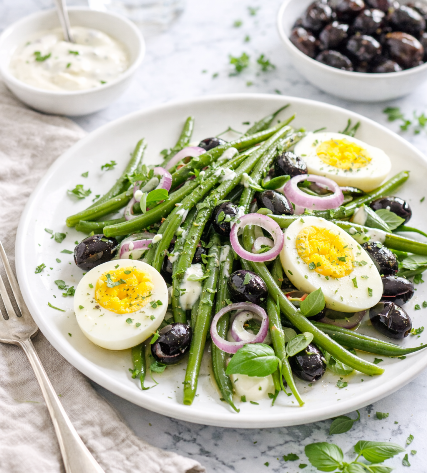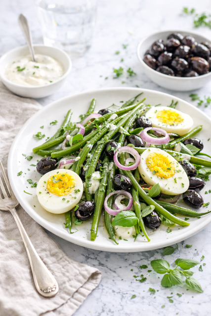 Salade de Haricots Verts aux Œufs Durs & Olives Noires de Nice, Sauce à l’Anchois