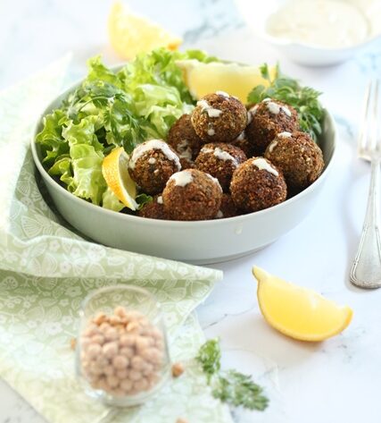 Originaires du Moyen-Orient, les falafels sont une spécialité culinaire composée traditionnellement de pois chiches ou de fèves broyés, associés à des épices, de l’ail, de l’oignon et des herbes, puis frits dans une huile bouillante.