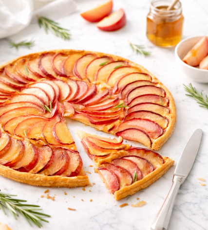 Le blog le met à l’honneur aujourd’hui à travers cette recette de Tarte Fine aux Pêches & au Romarin.