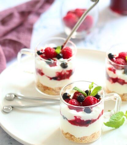 Verrines de Faisselle, Framboises, Cassis & Sablés Bretons