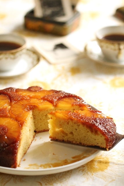 Huilez votre plat de cuisson et versez-y le caramel. Déposez ensuite les tranches d’ananas, recouvrez de pâte et enfournez pour 40 minutes de cuisson en surveillant régulièrement que la pâte colore bien, mais ne brûle pas.