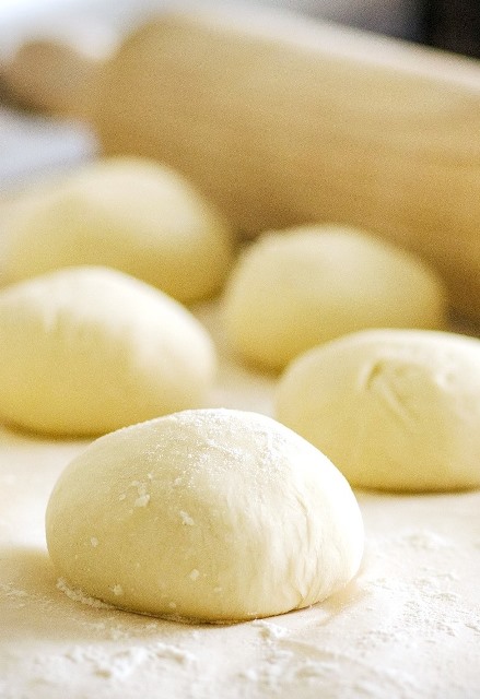 Appuyez doucement pour chasser l’air. Divisez la pâte en deux boules et laissez reposer encore 20 à 30 minutes. Puis, étalez à la main du centre vers les bords pour garder une croûte bien gonflée.