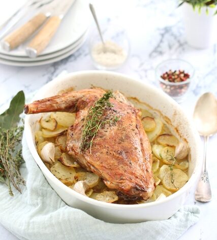 L’occasion pour moi de vous faire découvrir cette recette de gigot rôti au four, accompagné d’ail en chemise et de son gratin de pommes de terre.