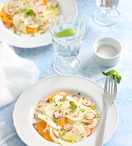Le fenouil, souvent boudé pour son goût anisé, révèle ici toute sa finesse. Associé à la douceur acidulée de l’orange, à la croquant des radis et à la fraîcheur de la menthe, il se transforme en une entrée élégante et pleine de vitalité.