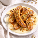 La pistache a cette capacité magique de sublimer les desserts tout en douceur, sans les alourdir. La crème de pistache est enveloppée dans une pâte feuilletée bien croustillante, dorée au four jusqu’à obtenir une jolie couleur ambrée.