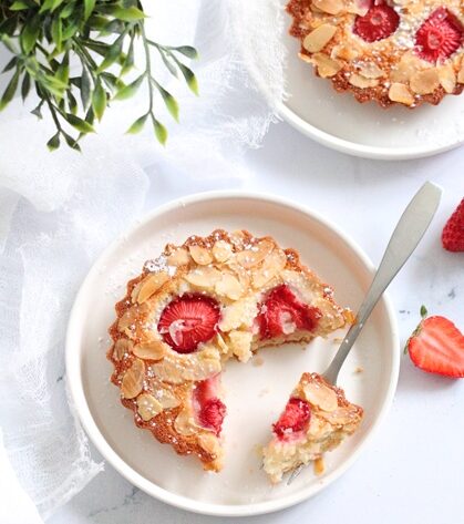 Si on pense souvent à la fraise en salade, en confiture ou simplement nature avec un peu de sucre, elle trouve aussi très bien sa place dans des petits gâteaux moelleux. Associée à la douceur de la poudre d’amande, elle devient ici la touche fruitée et acidulée d’un financier fondant, doré à souhait. Un équilibre parfait pour une pause sucrée ou un dessert improvisé.