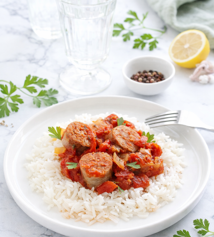 Traditionnellement, le rougail saucisses se déguste avec du riz blanc, des lentilles ou des haricots rouges. Il est souvent accompagné d’un rougail de tomates crues ou de mangue verte, pour la fraîcheur.