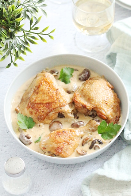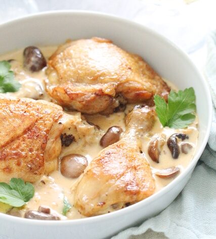 Ces cuisses de poulet à la crème et aux champignons sont un incontournable de la cuisine maison : simples, économiques et délicieuses. C’est le genre de recette que l’on refait souvent, tant elle plaît à tous les coups. À servir sans modération, surtout quand on a envie d’un plat chaleureux et authentique.