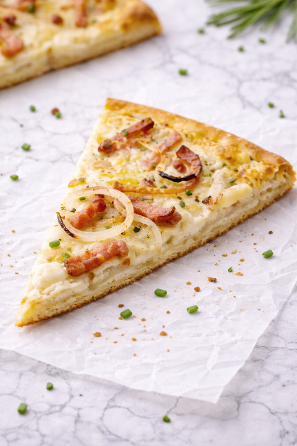 Son origine remonte à plusieurs siècles, dans les campagnes d’Alsace, où les boulangers utilisaient cette préparation comme un test de température du four à bois. Avant d’enfourner le pain, ils étalaient un morceau de pâte très fin, y ajoutaient ce qu’ils avaient sous la main, crème, oignons, lard, puis l’enfournaient quelques minutes.