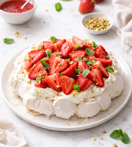 Avec sa meringue croustillante à l’extérieur et fondante à cœur, sa chantilly douce et peu sucrée, et ses fraises juteuses sublimées par un coulis maison… la pavlova devient une véritable ode à la fraîcheur. C’est un dessert qui impressionne visuellement tout en restant simple à réaliser, et surtout, qui fait toujours son petit effet à table.