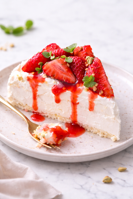 Idéal pour mettre en valeur les fruits de saison, et notamment les fraises, qui apportent une touche acidulée parfaitement équilibrée avec la douceur de la meringue et de la crème, son esthétique irrégulière et naturelle s’inscrit aussi dans une tendance plus spontanée et authentique : pas besoin de perfection, bien au contraire.