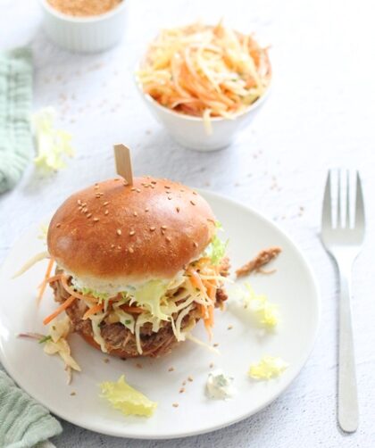 Voilà une recette qui combine gourmandise et bien-être : le Burger au Pulled Pork, agrémenté de Coleslaw maison frais et croquant. Un véritable voyage gourmand …