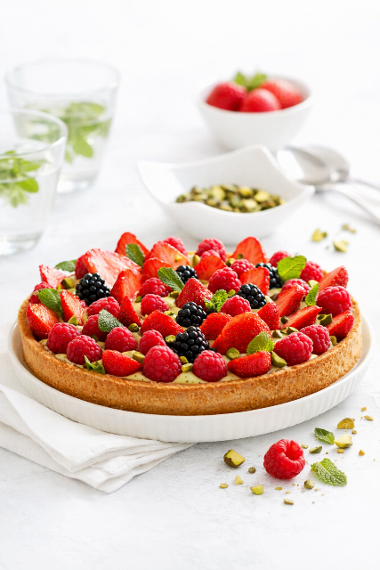 Si vous cherchez un dessert à la fois élégant, gourmand et plein de fraîcheur, cette tarte aux fruits rouges et crème pâtissière à la pistache …