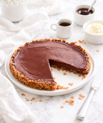 Aujourd’hui, je vous propose une recette originale de tarte au chocolat sur un fond de tarte en flocons d’avoine, délicatement parfumé au miel. Le flocon …